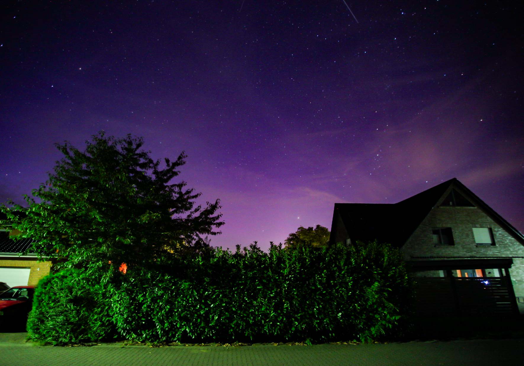 Hamburg-Rahlstedt ebenfalls fotografisches Polarlicht mit Strahlen.