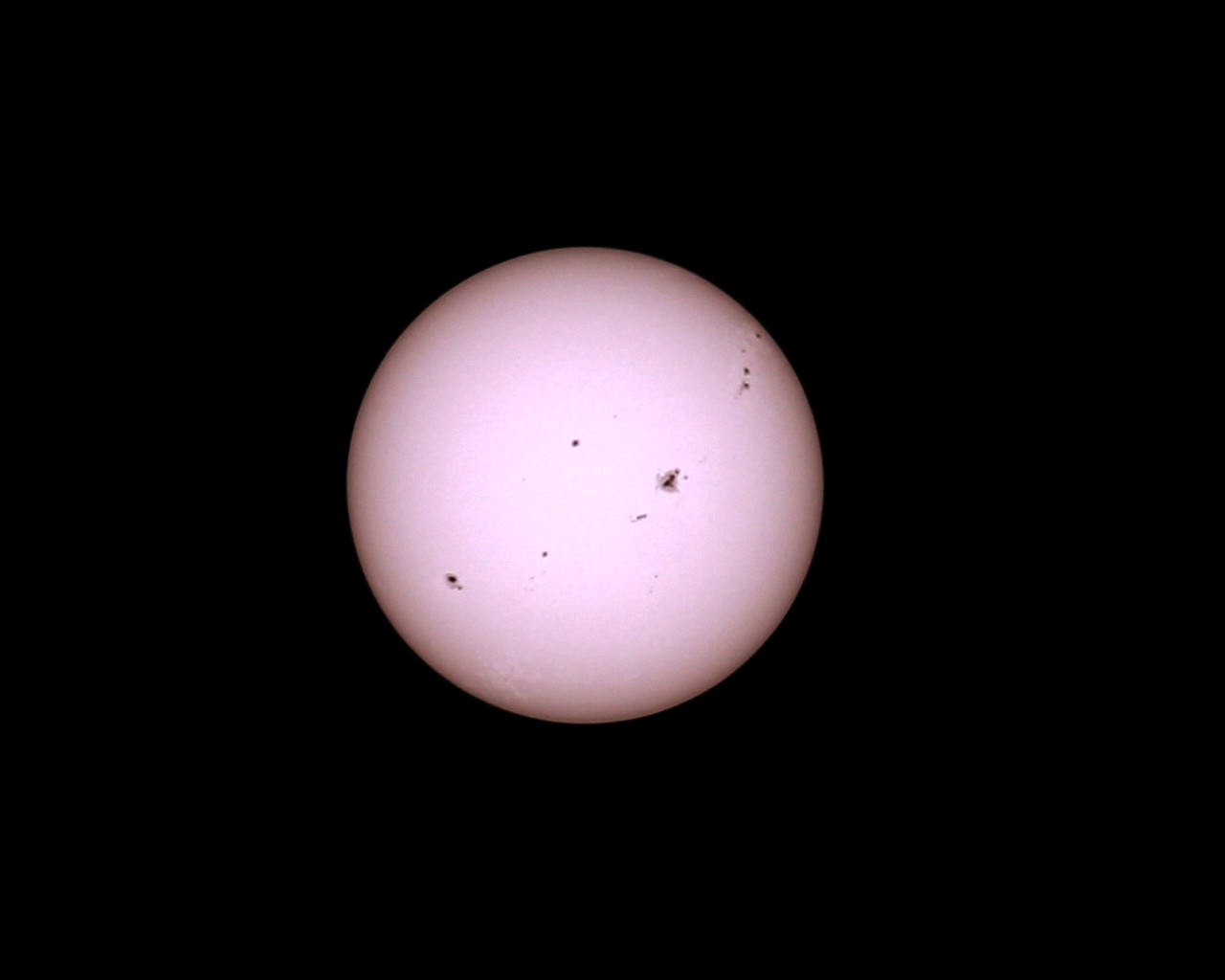 Beim Sichten der Bilder ist mir ein Fleck aufgefallen, der tatsächlich der AR3780 sein könnte. Er ist auch mit der Sonne hoch gewandert und immer am selben Ort auf der Sonne geblieben. Kann also auch kein Schmutz auf dem Sensor sein.
