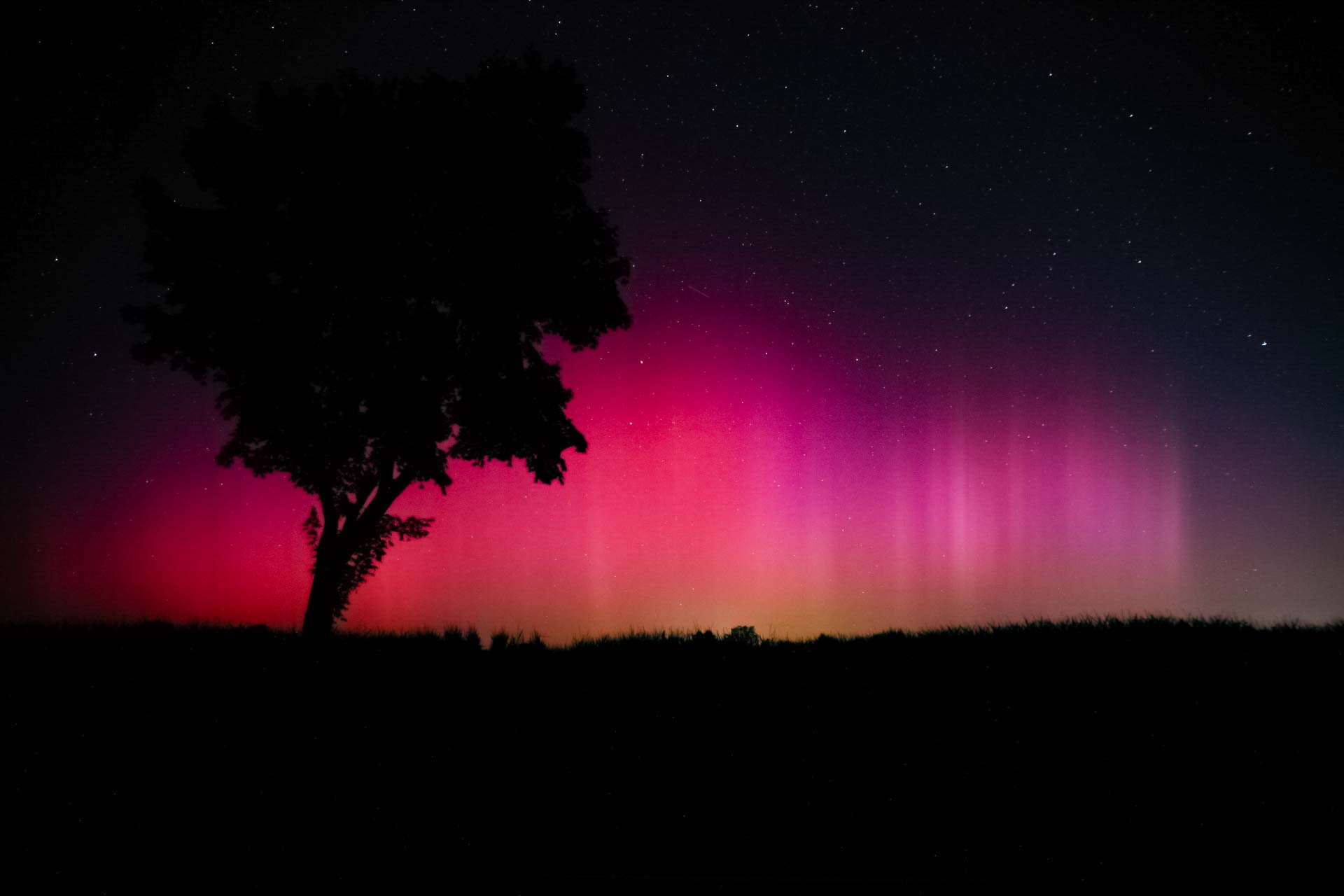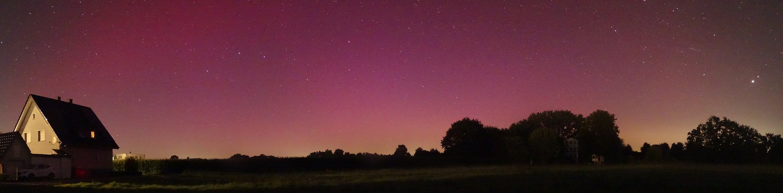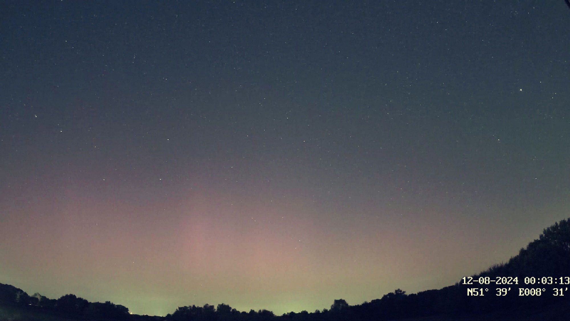 12.08.2024, 01:54 Uhr MESZ, Sittensen 53,3 Grad, Canon 6D, 17mm, 2.8, ISO 2000, 8 Sek, deutlich visuelles Polarlicht