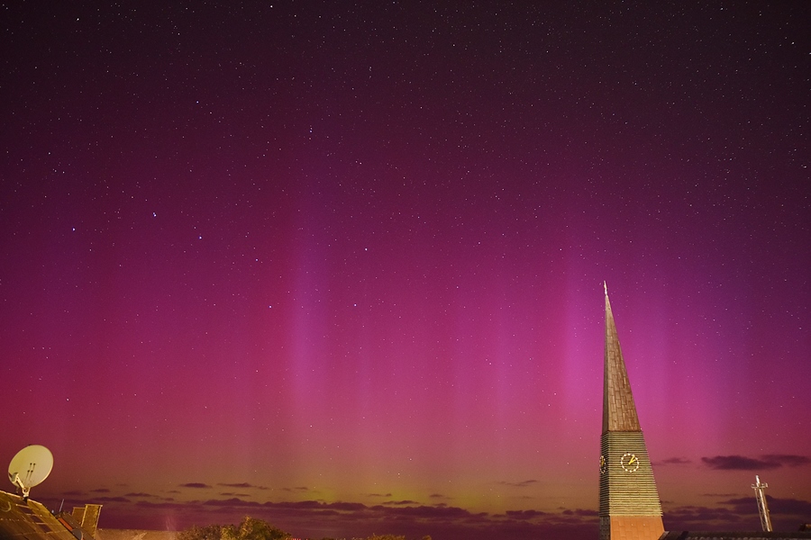Ich habe durch Zufall ab ca 2.24 Uhr MESZ bis 3.15 Uhr MESZ zeitweise sehr intensives Polarlicht in Flensburg aufnehmen können. Die Beamer waren deutlich visuel in grau wahrzunehmen. Zeitweise war der ganze Himmel rötlich gefärbt. Ein paar Sternschnuppen wurden auch eingefangen.
