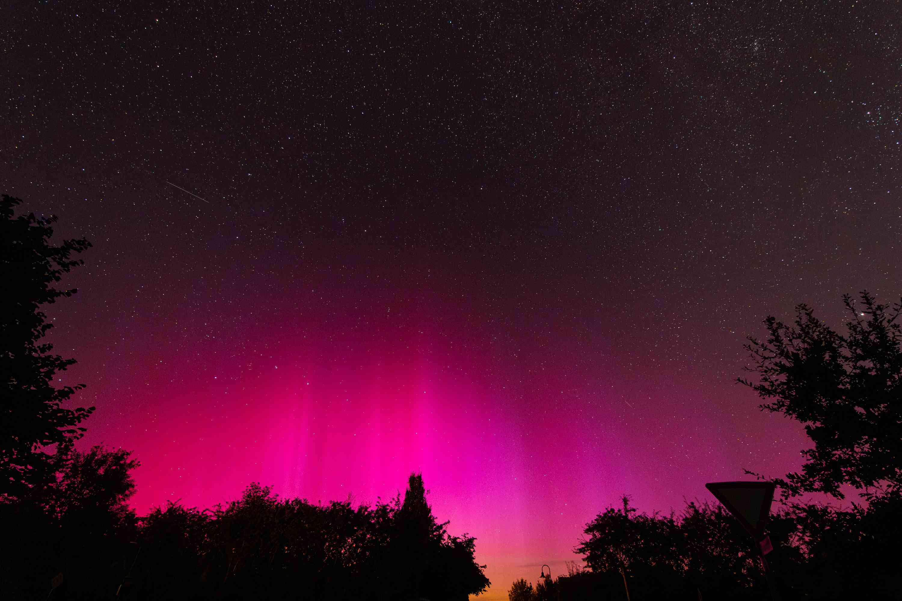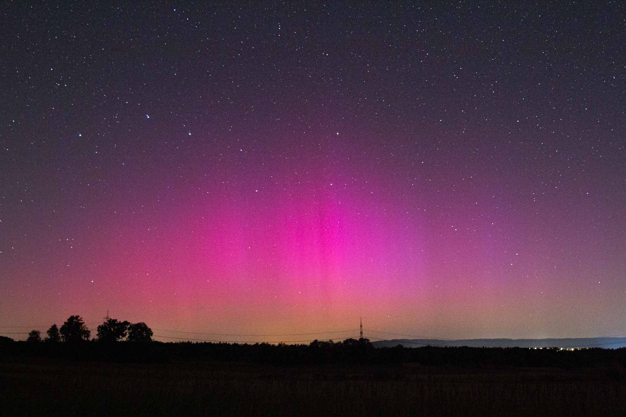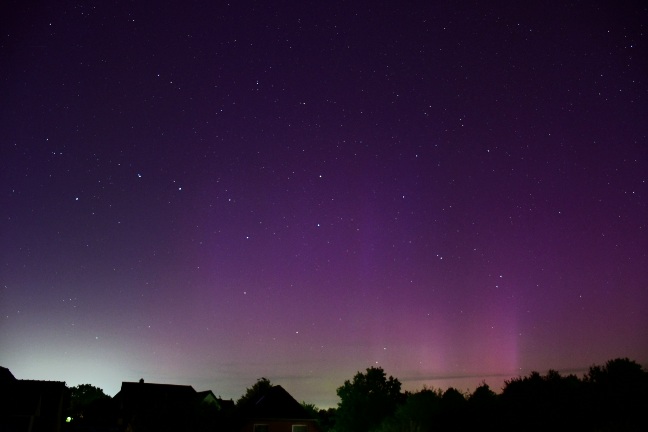 ich hatte nachts die Kamera draußen laufen wegen Perseiden. Helles fotografisches Polarlicht von 00:45-02:00 MESZ. Hätte auch für visuell gereicht, musste aber schlafen.