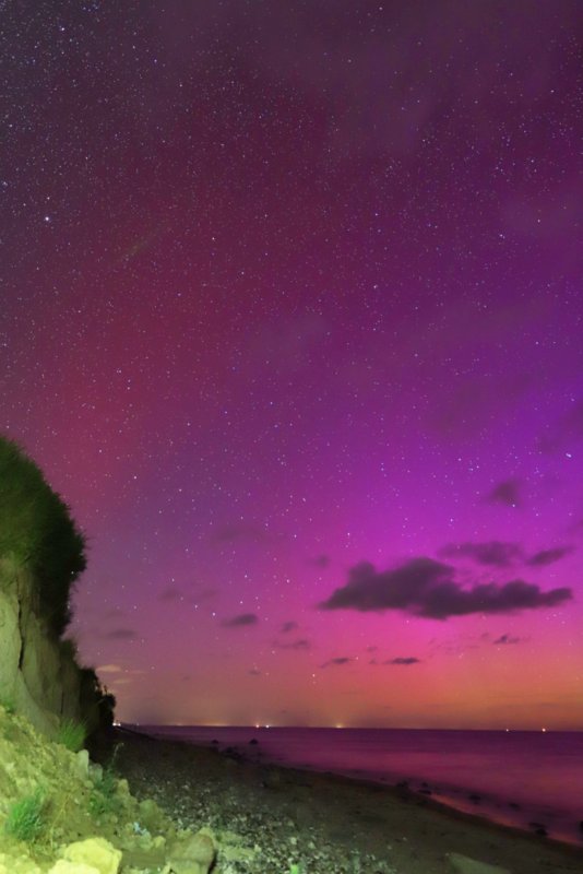 auch in der Nähe von Kiel konnten die Polarlichter eindeutig mit bloßem Auge beobachtet werden. Die Beamer waren eindeutig zu sehen.