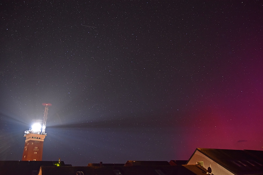 Ich habe durch Zufall ab ca 2.24 Uhr MESZ bis 3.15 Uhr MESZ zeitweise sehr intensives Polarlicht in Flensburg aufnehmen können. Die Beamer waren deutlich visuel in grau wahrzunehmen. Zeitweise war der ganze Himmel rötlich gefärbt. Ein paar Sternschnuppen wurden auch eingefangen.