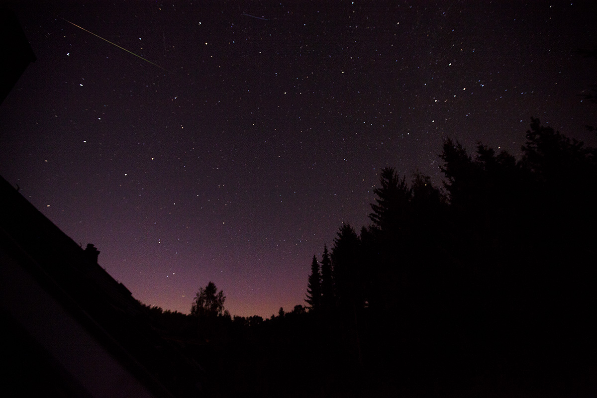 Mit dem hellen Perseiden hatte ich unglaublich viel Glück bei nur zwei Sekunden Belichtungszeit! Auslöser gedrückt - Klick - eine Sekunde - Meteor - Klick - Verschluss zu.