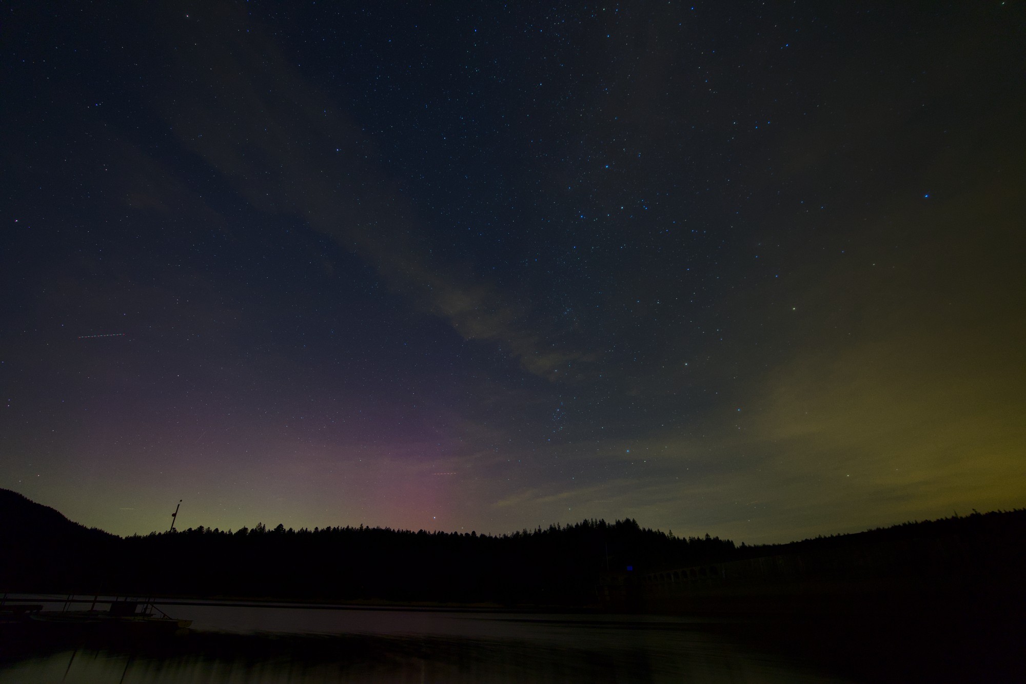 So zeigte sich gleich auf den ersten Fotos, auf den noch ordentlich Dämmerung hineinspielte, Polarlicht.