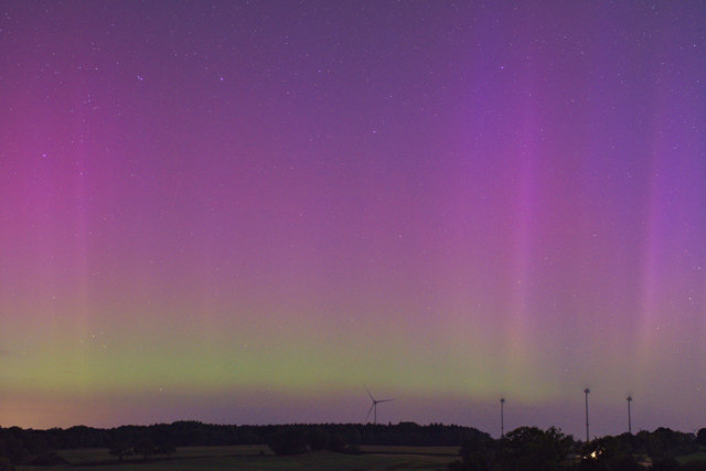 Ob der rote Strahl unten in der Mitte doch Polarlicht ist oder von der WKA stammt, weiß ich leider nicht genau, meine aber dass es von letzteren stammt (außerdem ist am Horizont ein Meteor?).