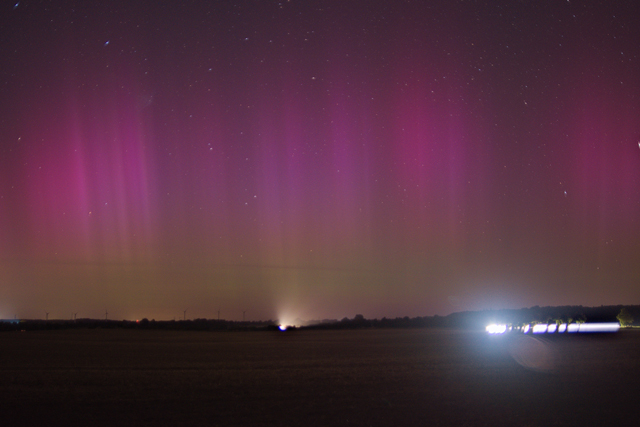 Bin bei Bad Oldesloe und habe seit meiner Ankunft um 22:40 MESZ schwach visuelles Polarlicht.