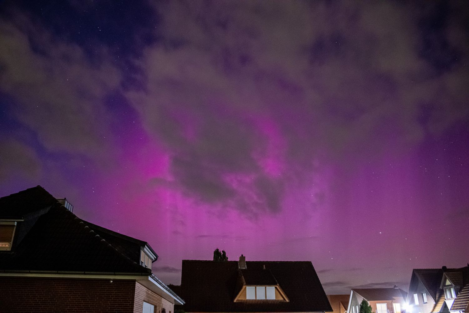 Auch bei super starker Bewölkung hatte ich kurz Glück in Mittelsachsen. 09648 Mittweida gegen 21.20Uhr Mez. War es möglich durch ein Wolkenloch Polarlicht fotografisch nachzuweisen.