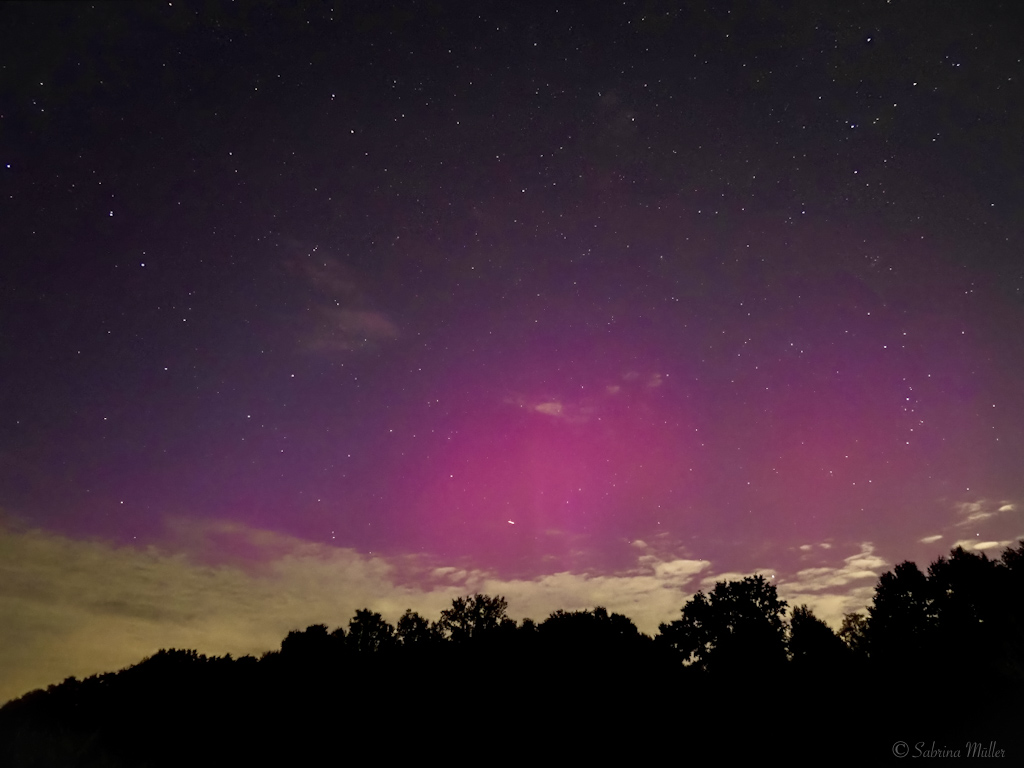 Erst so gegen 22 Uhr rum zeigten sich endlich erste Lücken am Nordhorizont. Ich machte ein paar Probefotos von zuhause und beschloss
