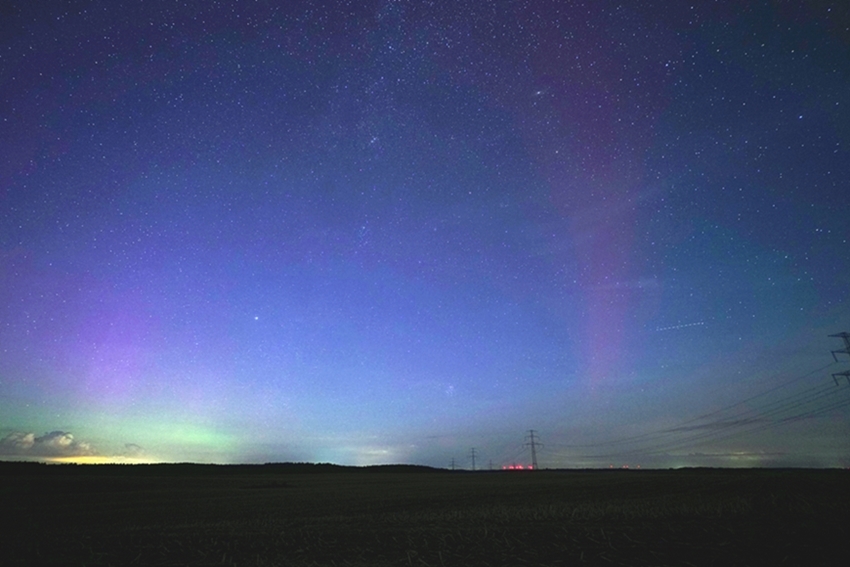 Habe aber den ersten Zeitpunkt verpasst, weil ich bis 20h im Baumarkt war, dann das Fahrrad beladen habe und zu Fuß zu einem weiteren Geschäft geschoben habe. Von dort bin ich dann ca. 22 Uhr wieder zu Fuß Richtung Wohnung gelaufen. Als freier Blick nach Norden war, habe ich durch die Handykamera geschaut, weil graue Streifen am Himmel zu sehen waren, sahen aber wie dünne Wolkenstreifen aus. Es wurde beim Blick aufs Display auch nicht farblich, denn ich hatte um ca. 18h auf dem PC gesehen, dass es abends evtl. Polarlicht geben könnte, aber ob bis GÖ?