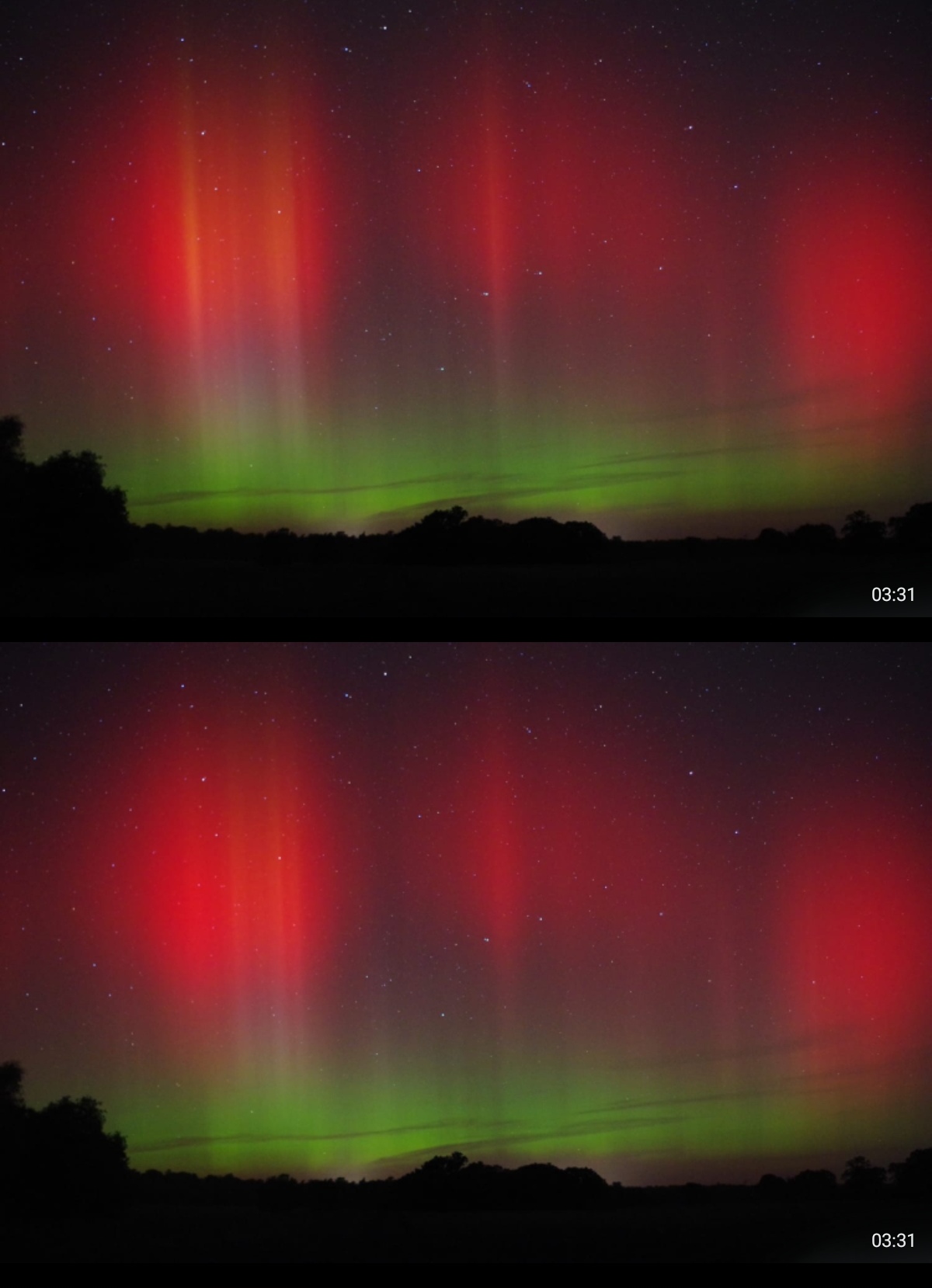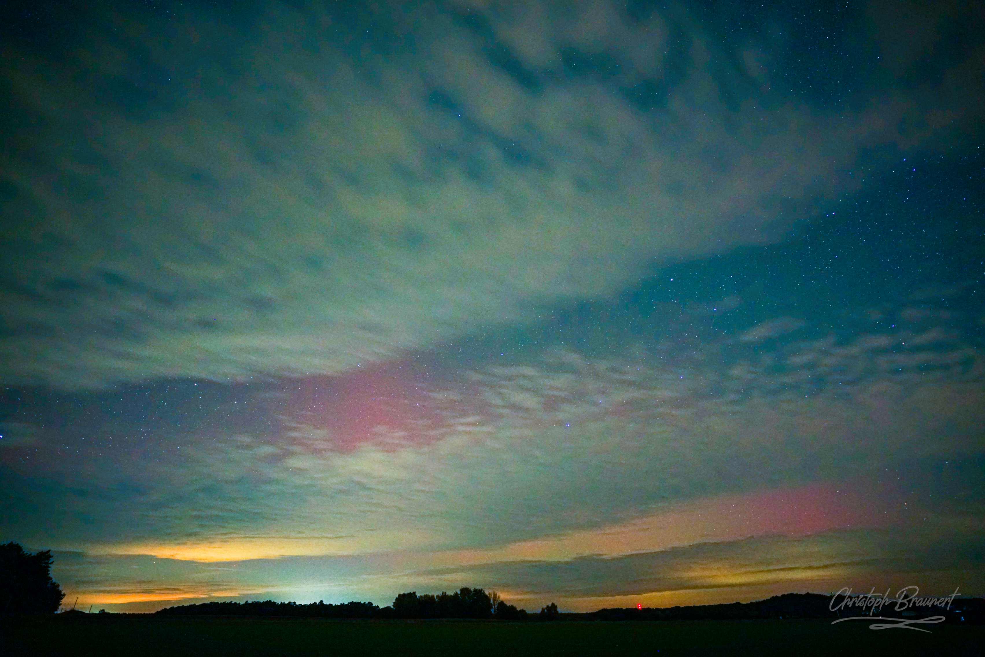 Auf (sehr schlechten) Handyfotos mitten in Lichtverschmutzung waren wir nicht sicher ob was farbliches durchschimmerte.