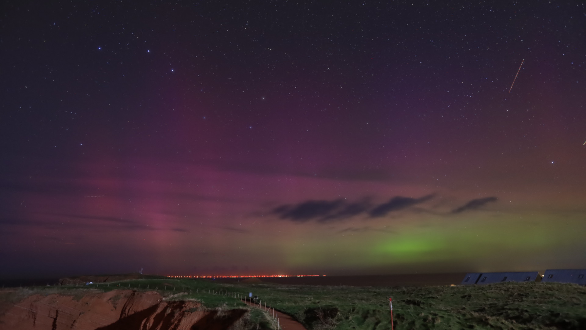 Knapp über der Straße am unteren Bildrand scheint man sogar grünes PL zu sehen. Leider zogen jetzt immer mehr Wolken auf, so konnte ich aber immerhin schnell mal dieses Posting verfassen.
