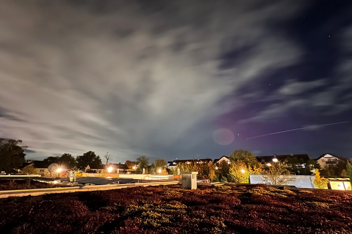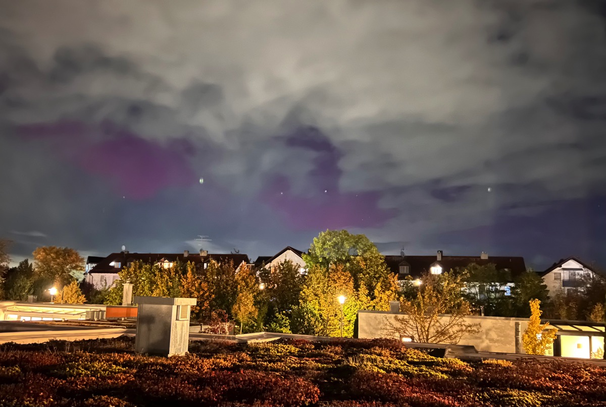 Zwischen den Regenschauern konnte man in Ulm (48.3N) tatsächlich heute das Polarlicht sehen