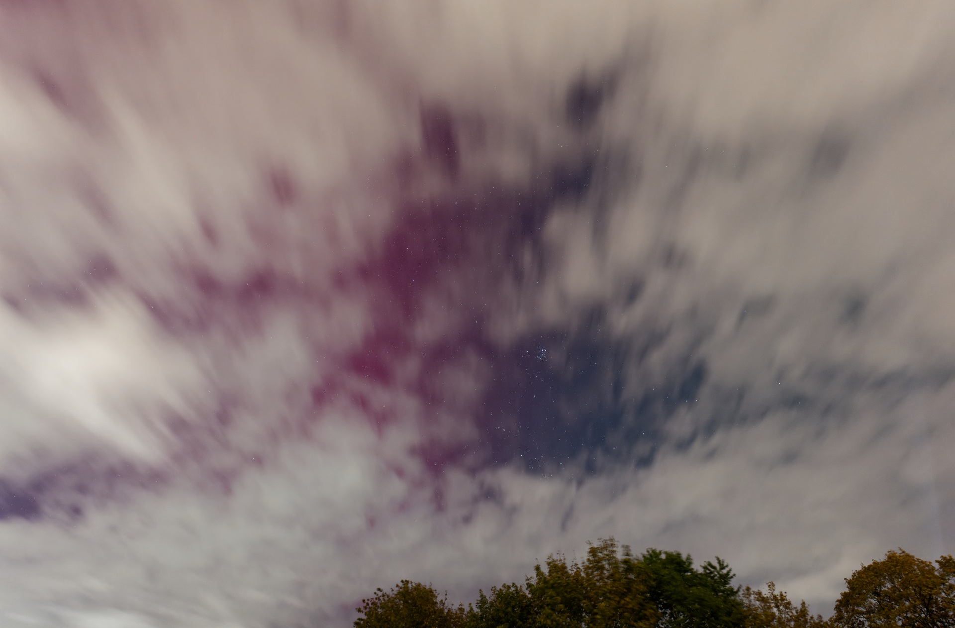 Für geübte Beobachter war das rote Leuchten in Wolkenlücken deutlich erkennbar. Wolkendecke von unten angestahlt (Steulicht).