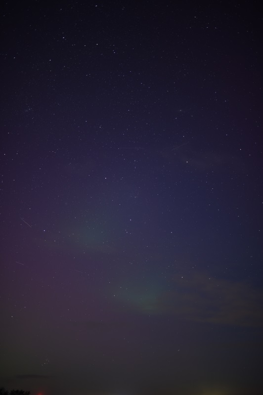 Diesmal wurde die Beobachtung allenfalls durch kurze Regenschauer unterbrochen. Insgesamt konnte ich 4 Substürme beobachten, den 1. bis 3. im Fieler Moor bei Volkerswurth, den letzten dann zu hause in Hemmingstedt. Dabei stieg die Helligkeit von Mal zu Mal an und erreichte erst in Hemmingstedt um ca. 23:15 UTC extreme Helligkeit. Dadurch ist es das mein hellstes PL der letzten Jahre und auch das schönste.
