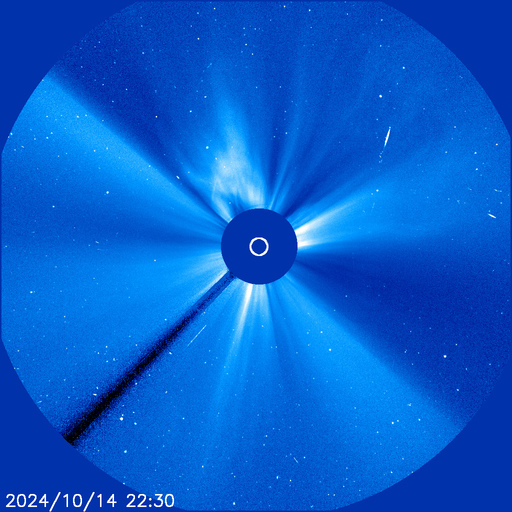 Danke für den Hinweis, Christoph! Man sieht es sehr gut. Das ist ja völlig abgefahrenChristoph Gerber hat geschrieben: ↑13. Okt 2024, 12:16 Wenn wir Glück haben, wird er bei der Kreuzung der Erde durch die Kometenbahnebene morgen nachmittag (Okt 14.68 UT) noch in LASCO C3 erkennbar sein: Dann sollte der äußerst schmale (und dadurch auch auffällig helle??) "Gegenschweif" vor der Sonne vorbeiziehen. Ob es dann zu einer Sichtbarkeit in LASCO C2 kommen wird?