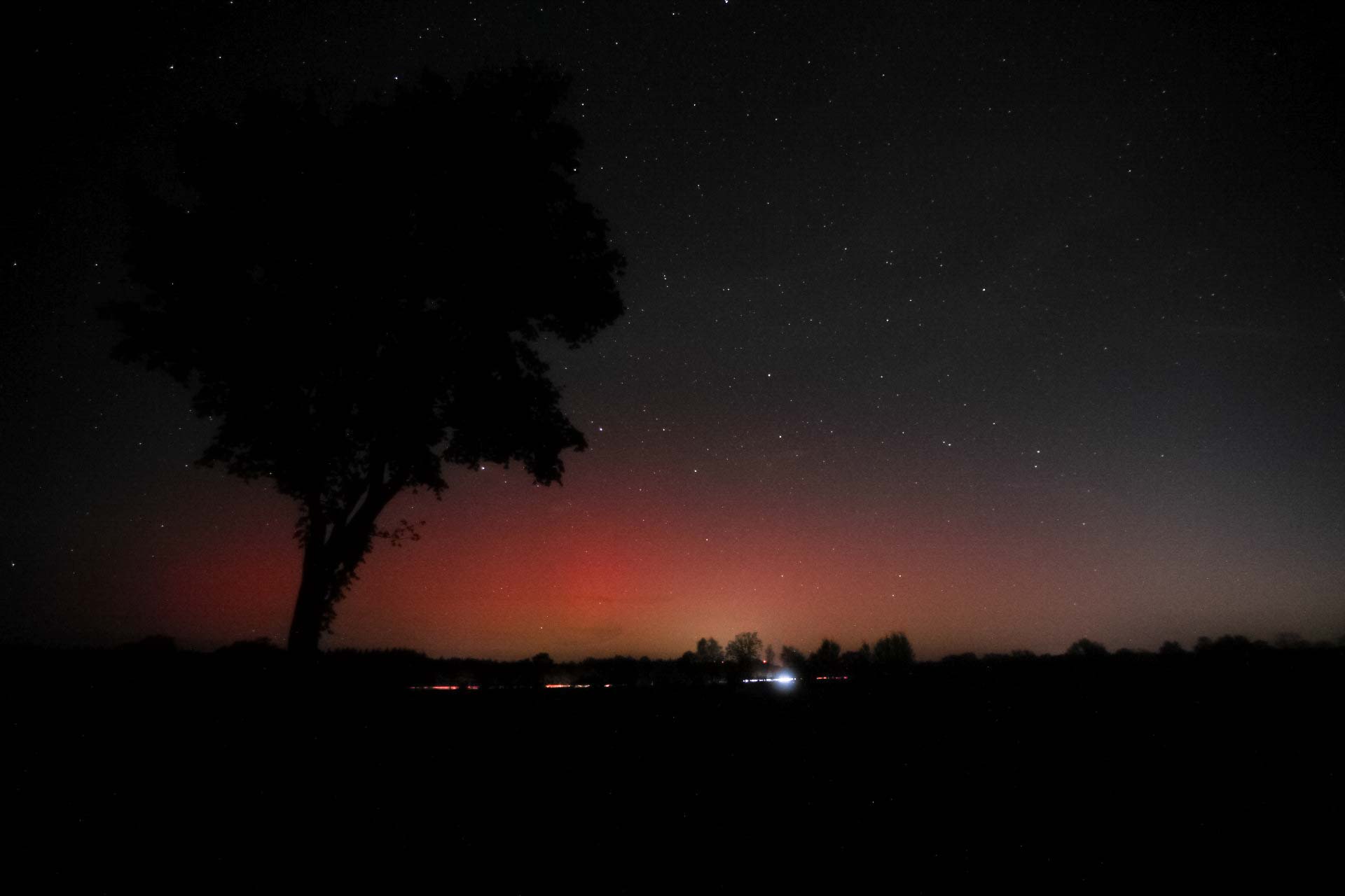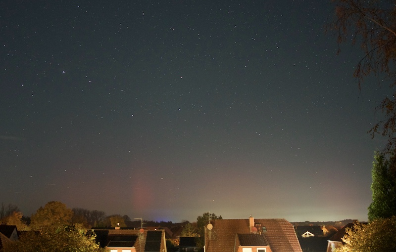 Moin, bei Talkau in S-H ebenfalls seit einer Weile fotografisches Polarlicht. Diffus rot mit gelegentlichen Strahlen.
