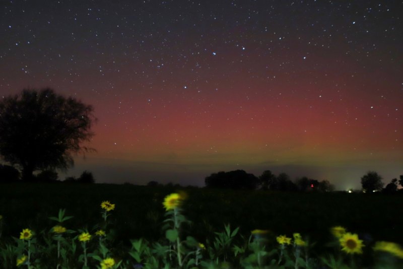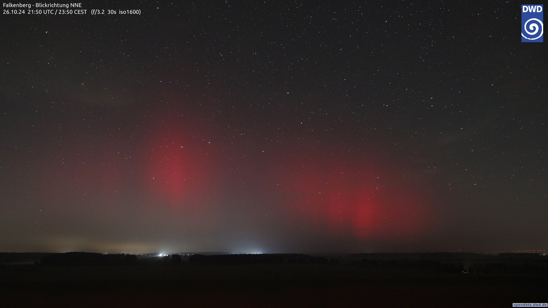 Auch aus Büdelsdorf eine Sichtung, ab ca. 20:30 MESZ schwaches rotes Leuchten, zum Höhepunkt gegen 23:50 MESZ rote Beamer, dann wieder schwächeres rotes Leuchten. Zweite Aktivitätsphase gegen 01:20 MESZ mit roten Strahlen.