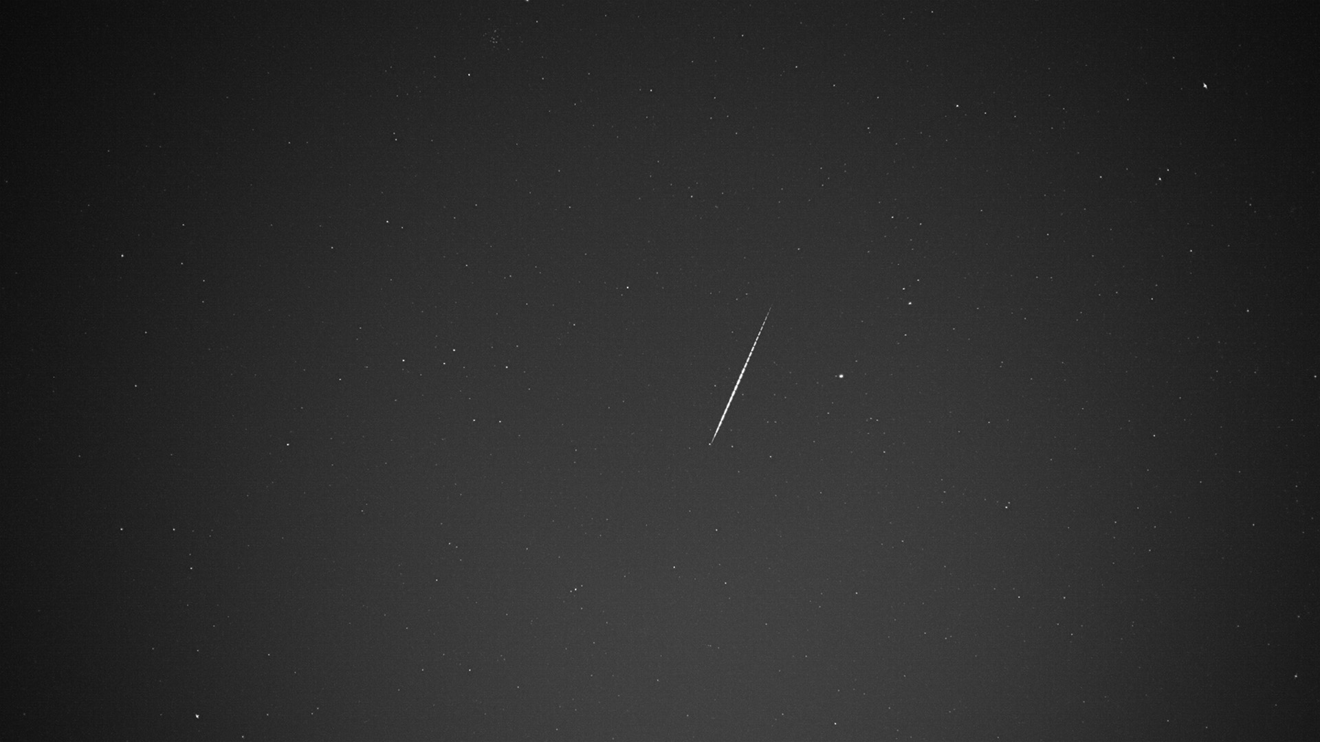 Meine Kamera hat nur einen schwachen und eine eine hellere Feuerkugel aufnehmen können, beide aber auf fast identischer Bahn.