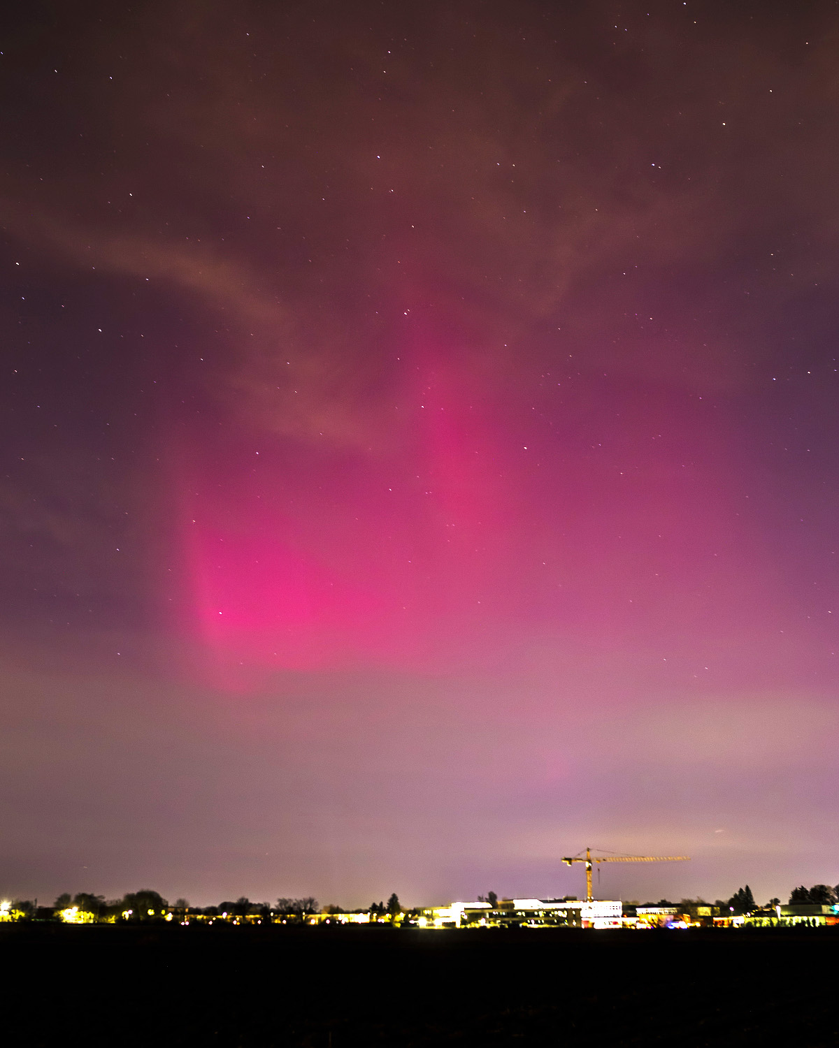In Lörrach zwischen ca. 18:20 bis 18:50 fotografisch, ab 18:30 für ca. 3 min schwach visuell rotes Glimmen in einem relativ kleinen Bereich, zeitgleich mit den starken Ausschlägen an den norwegischen Magentometern.