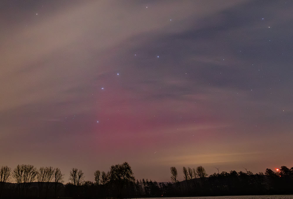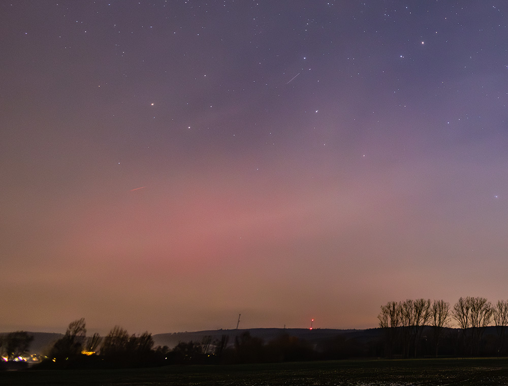 Kirchhain in Mittelhessen aktuell auch fotografisch rotes Polarlicht. Daten und Bilder folgen dann später.