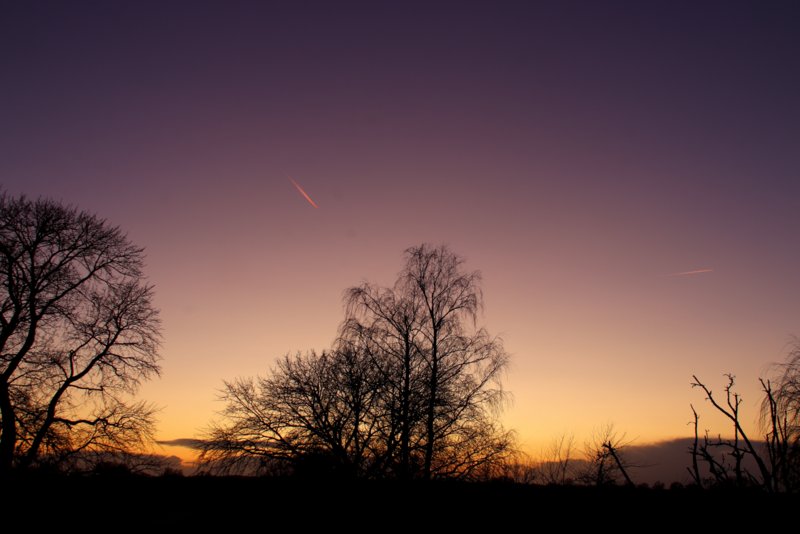 Wieder ein wenig Morgenrot von heute, 14. Januar. Ein kleines Stück Lichtsäule ist mit "eingearbeitet":
