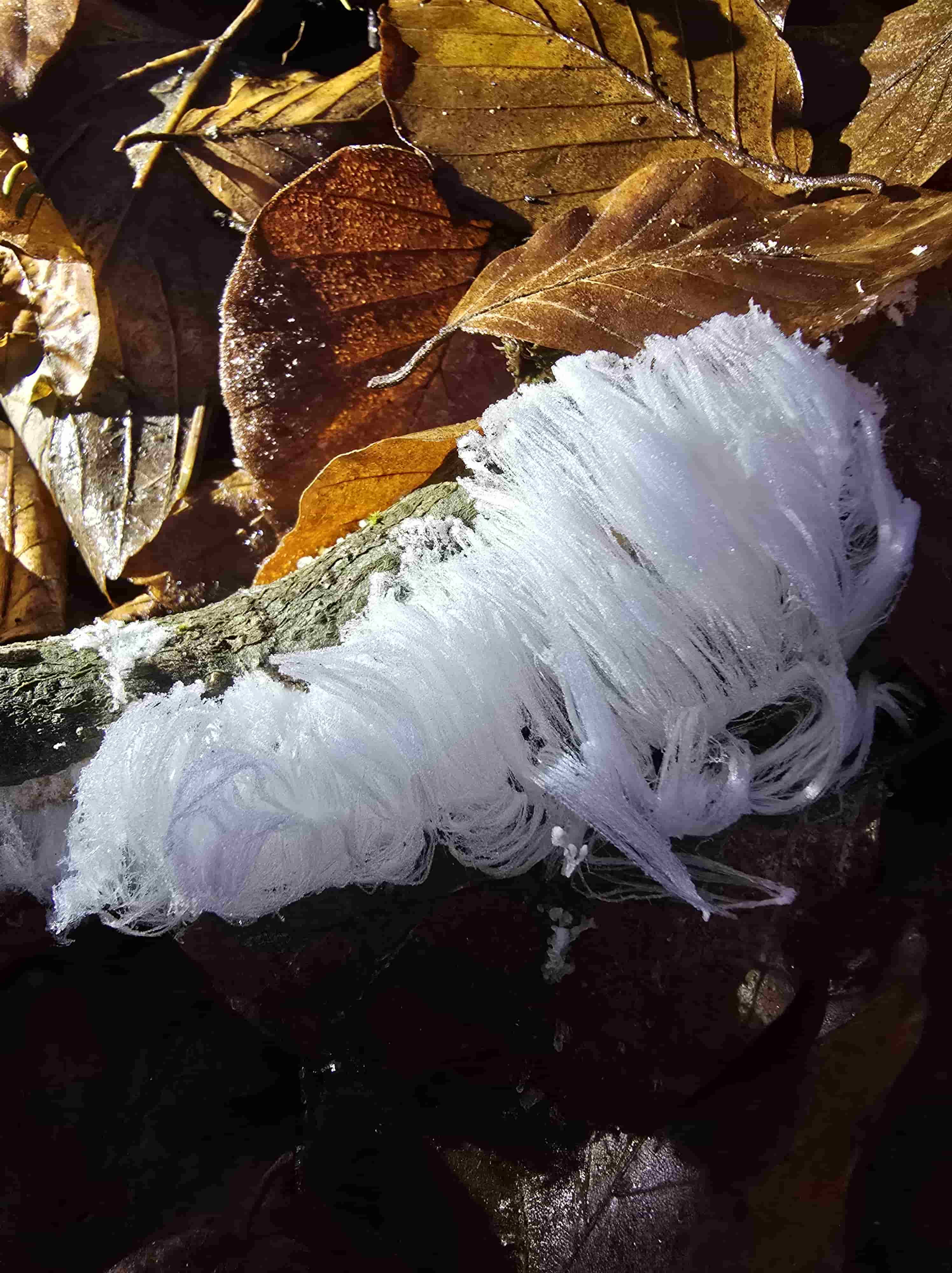 Ich hatte auch im Dezember 2024 die Möglichkeit, das erste Mal Haareis zu sehen und zu fotografieren. Ich war sehr fasziniert. Hier ein paar Fotos davon.