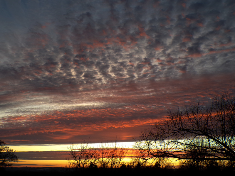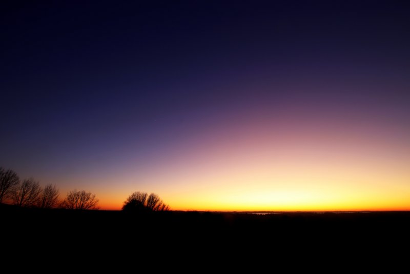 Wieder ein wenig Morgenrot von heute, 14. Januar. Ein kleines Stück Lichtsäule ist mit "eingearbeitet":