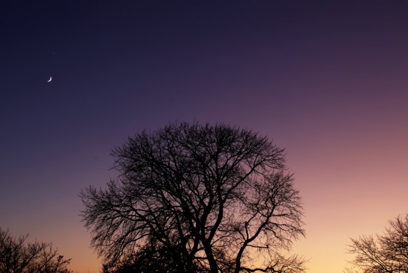 Wieder ein wenig Morgenrot von heute, 14. Januar. Ein kleines Stück Lichtsäule ist mit "eingearbeitet":