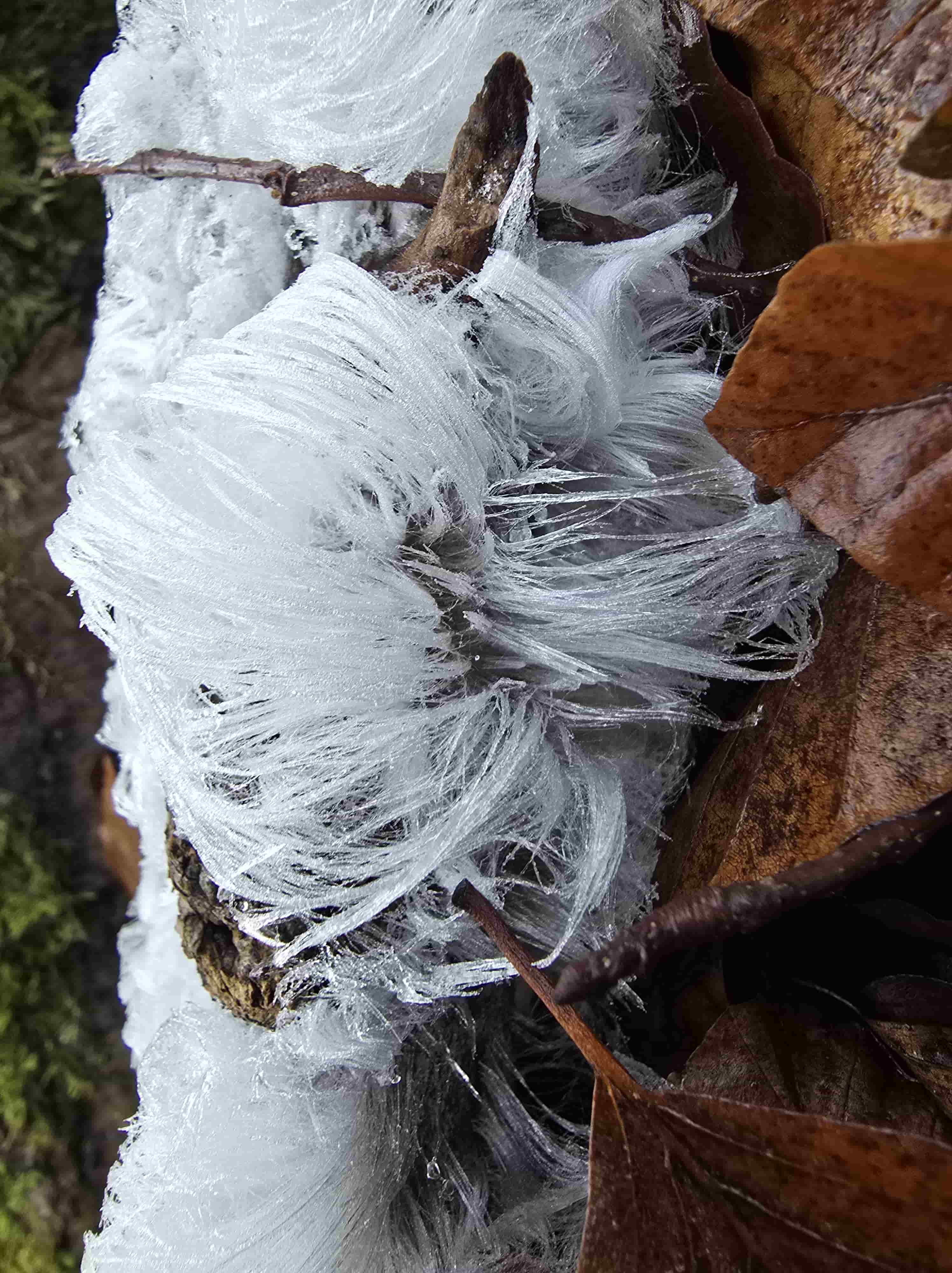 Ich hatte auch im Dezember 2024 die Möglichkeit, das erste Mal Haareis zu sehen und zu fotografieren. Ich war sehr fasziniert. Hier ein paar Fotos davon.