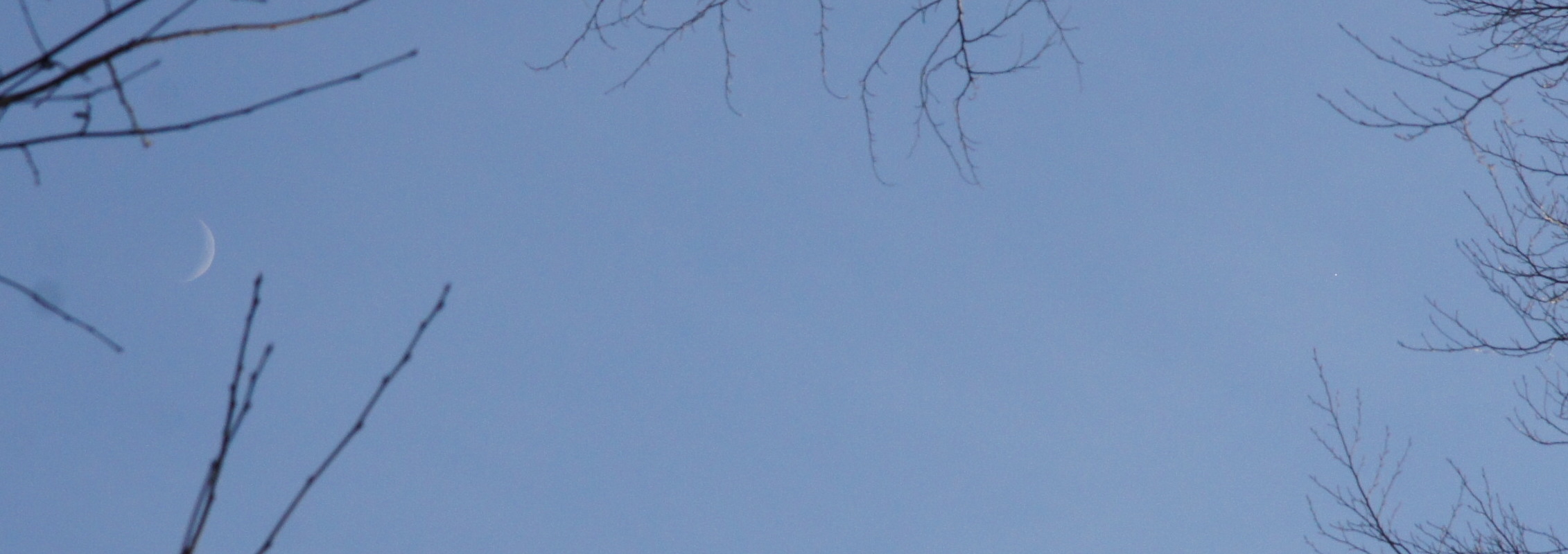 heute war die Situation ähnlich der gestrigen: am Nachmittag stand die Venus etwa 10° westlich (rechts) des Mondes. Bei einem Spaziergang im Wald habe ich das Paar erneut wiederholt problemlos gesichtet. Es ist mir heute sogar gelungen, die Venus (1) in Cirren und (2) zwischen dem Geäst der Bäume (mit Anhaltspunkt Mond nutürlich!) zu sehen!