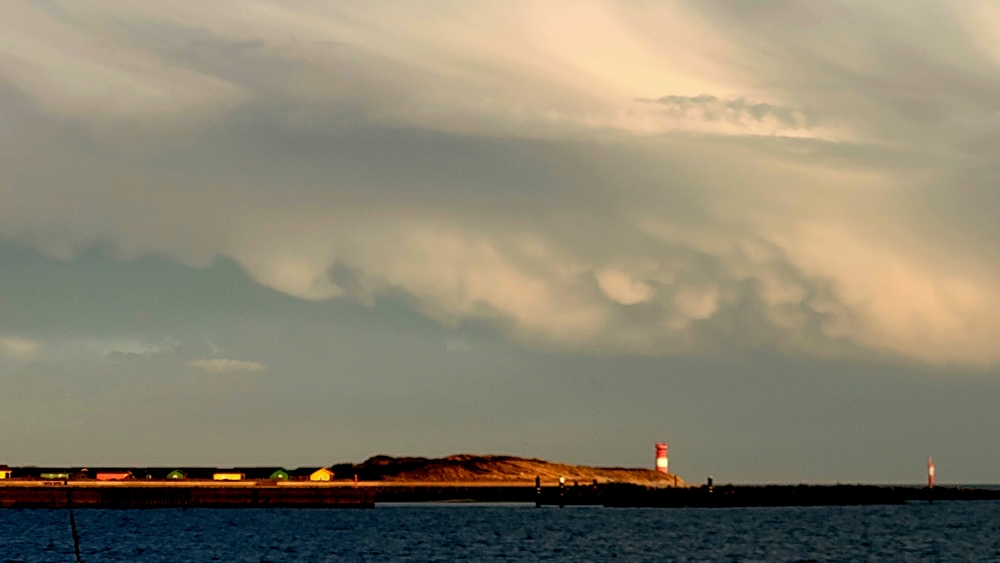 Eine Schauerzelle heute Nachmittag im Süden von Helgoland (leider hatte ich nur das Handy dabei).
