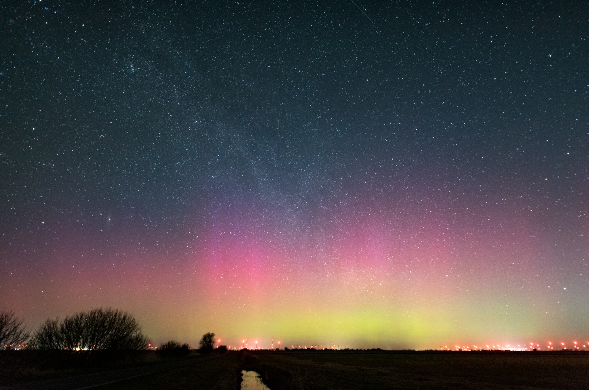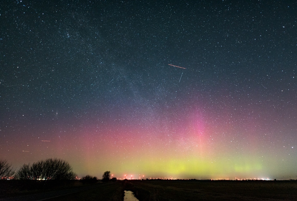 Auch an der priv. Wetterstation Süderlügum gab es ein deutliches fotografisches Polarlicht zu sehen. Die Beamer hatten eine geschätzte Höch von ca 60° übern Horizont.