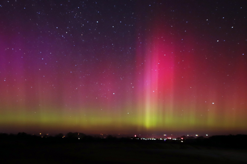 Auch an der priv. Wetterstation Süderlügum gab es ein deutliches fotografisches Polarlicht zu sehen. Die Beamer hatten eine geschätzte Höch von ca 60° übern Horizont.