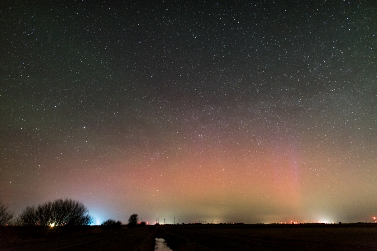 Fotografisches Polarlicht bei Kükdörp Westerdeichstrich, 54,2 Grad Nord.