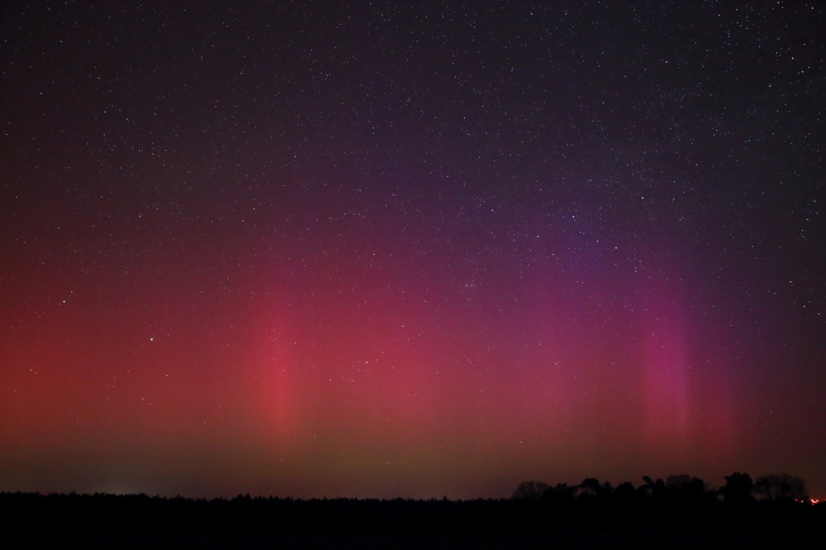 Ich hatte mich dieses Mal auf einem Feld nördlich von Niendorf, bzw. östlich von Schnelsen positioniert. Die Bedingungen dort waren nicht ganz optimal, in Richtung Norden störte doch recht viel Lichtverschmutzung und Dunst gab noch den Rest dazu. Trotzdem konnte ich über den gesamten Zeitraum fotografisch rotes Glimmen festhalten. Kurz nach Mitternacht MEZ wurde es sogar mal schwach visuell als Aufhellung sichtbar.