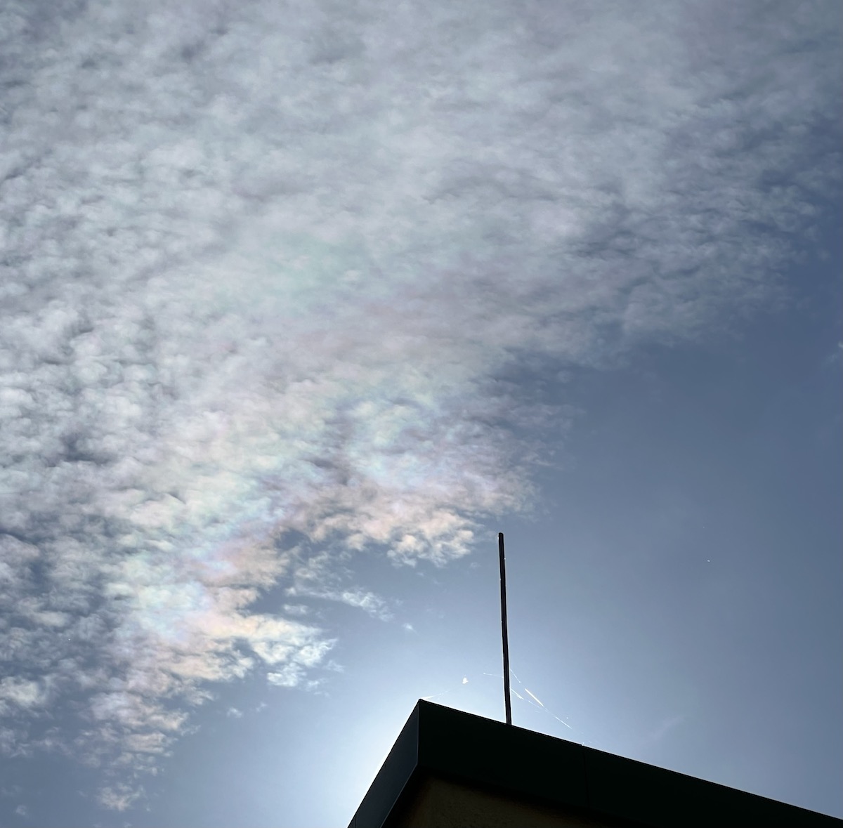 Bei wunderschönstem Wetter konnte ich heute wieder ein paar Regenbogen-Wölkchen beobachten. Nach meiner ersten Sichtung im März ist dies heute meine nächste und stärkste Sichtung.