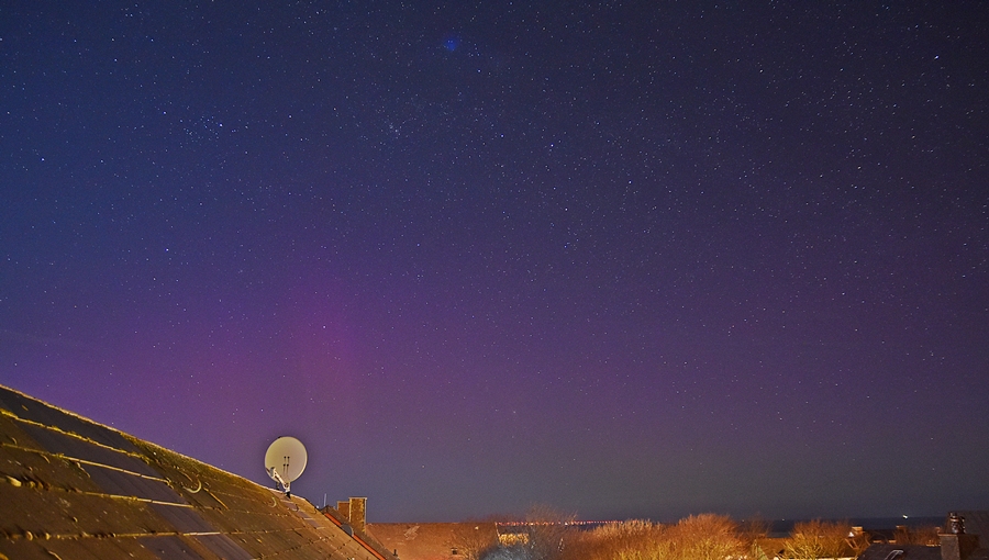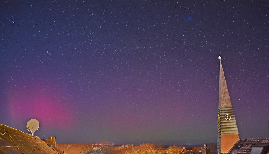 Auch an der priv. Wetterstation Süderlügum (54° 52´19″ N/8° 54´45″ O) wurde am 03.04.2025 in der Zeit von 23.15 - etwa 23.45 Uhr MESZ und dann wieder am 04.04.2025 in der Zeit von 04 - 05 Uhr MESZ ein fotografisches Polarlicht aufgezeichnet.