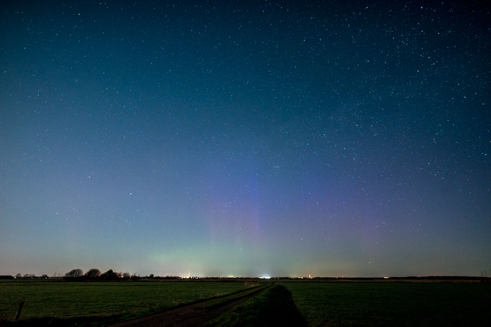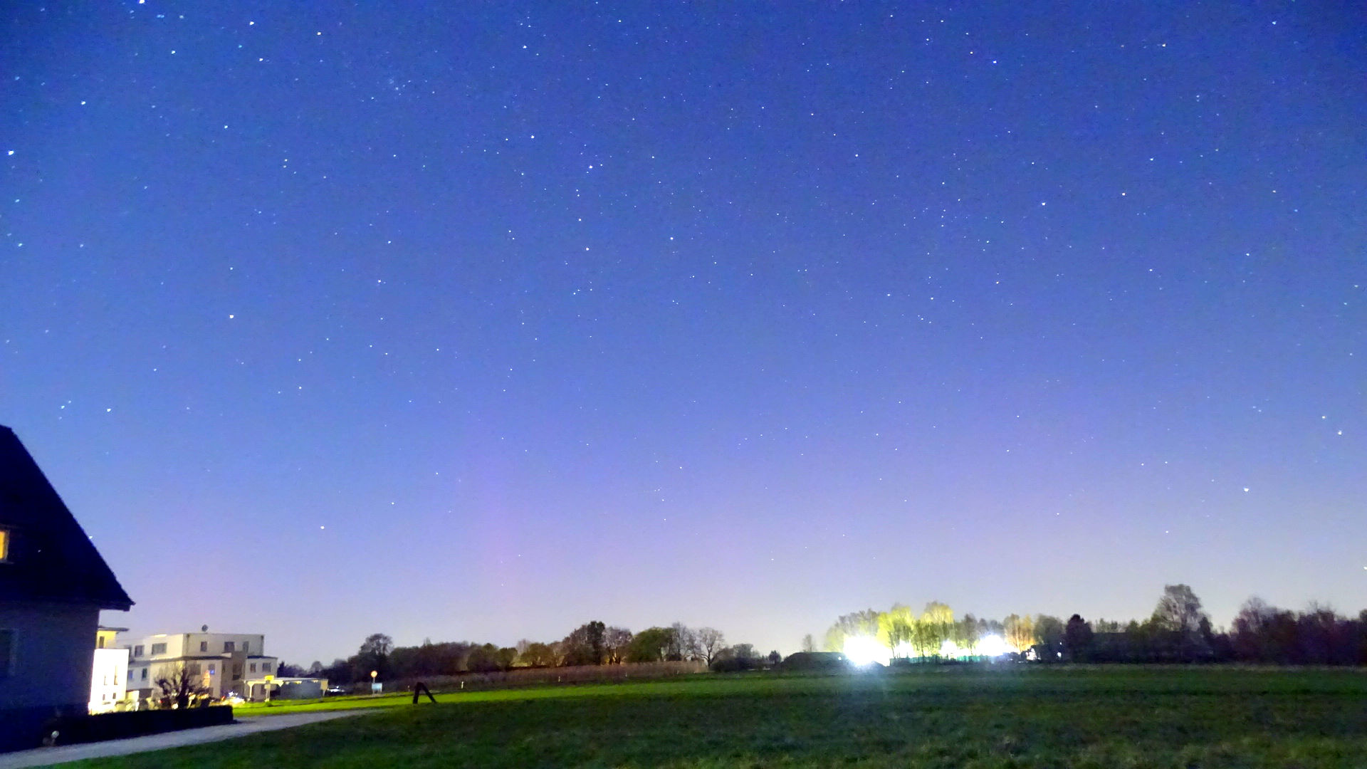 nicht viel, aber immerhin etwas. Überwiegend war es rot-violettes Glimmen. Im Ansatz sind aber auch einzelne Strahlen erkennbar. Auf dem Kameradisplay sah das teilweise etwas anders aus, wo die Strahlen durchaus erkennbar waren. Anbei zwei Fotos: