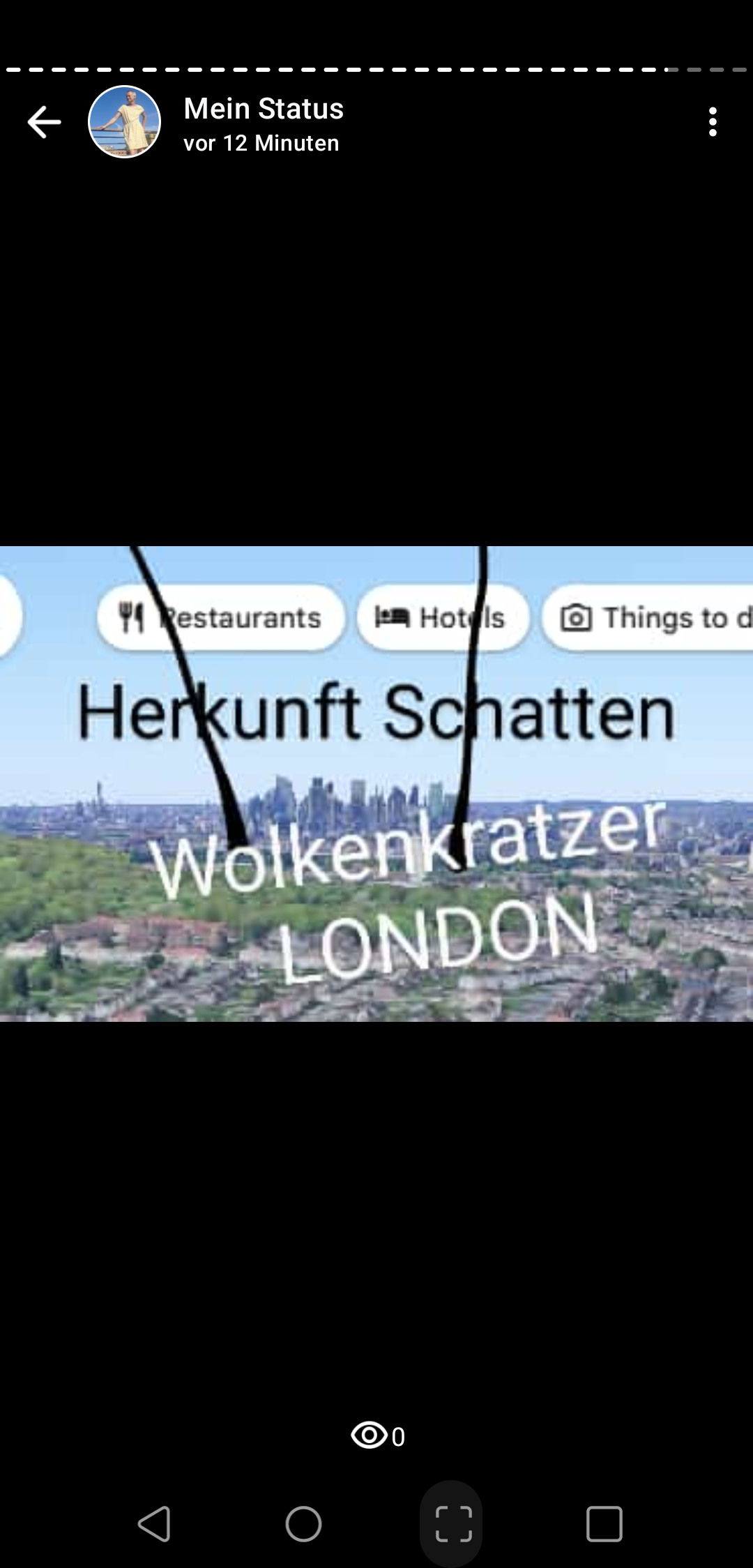 Im Nachgang habe ich nun eine relativ steile These entwickelt. Ein Erklärungsversuch war, dass diese Abschattung in der Lichtsäule die Wolkenkratzer von London verursacht haben könnten. Vor lauter Begeisterung dieser These habe ich einen Erläuterungsversuch in meinem Whatsapp-Status für Unbedarfte gepostet. Diese Bilder möchte ich nun - mal schaun, ob es geht, hier nun anhängen, um zu verdeutlichen, wie ich auf diese recht ungewöhnlich klingende Erklärung gekommen bin.