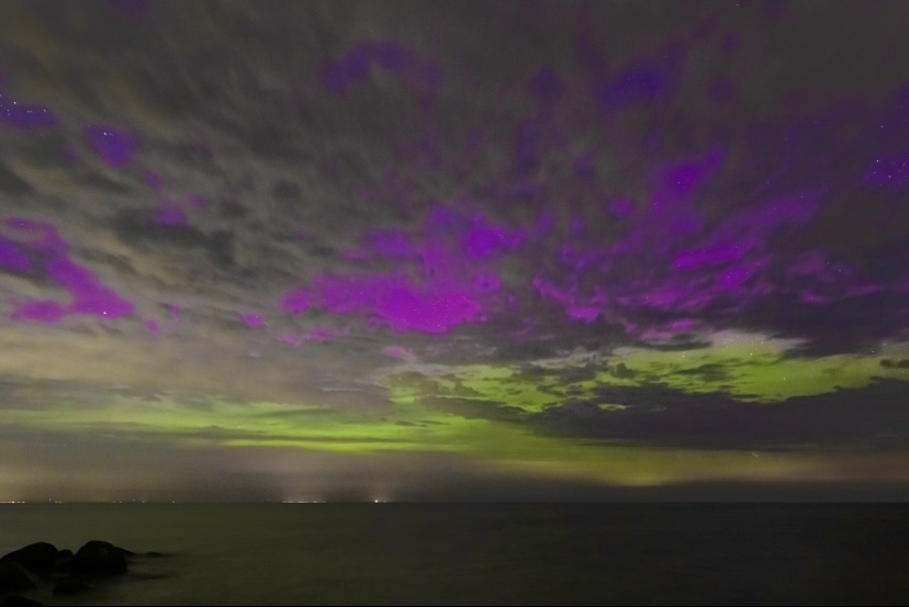 hier meine Sichtung aus Ilmenau in Thüringen. Es war vor allem Richtung Norden nicht der klarste Himmel. Eigentlich hatte ich mir einen dunklen Acker gesucht, habe diesen aber 14min zu früh verlassen. Ich ahnte schon, dass der drastische Sprung von -15nT (einem Wert, der sich ja vorher stundenlang hielt) auf plötzlich +12nT ein tolles Feuerwerk auslösen könnte, dass es aber so lange dauert, bis es "funkt", hatte ich dann doch nicht geahnt... Daher wurde es eine Notfallaufnahme an einem geöffneten Fenster in einem viel zu hellen Wohngebiet. Mindestens daher Sichtbarkeit nur fotografisch. Immerhin den Substorm nicht komplett verpasst.
