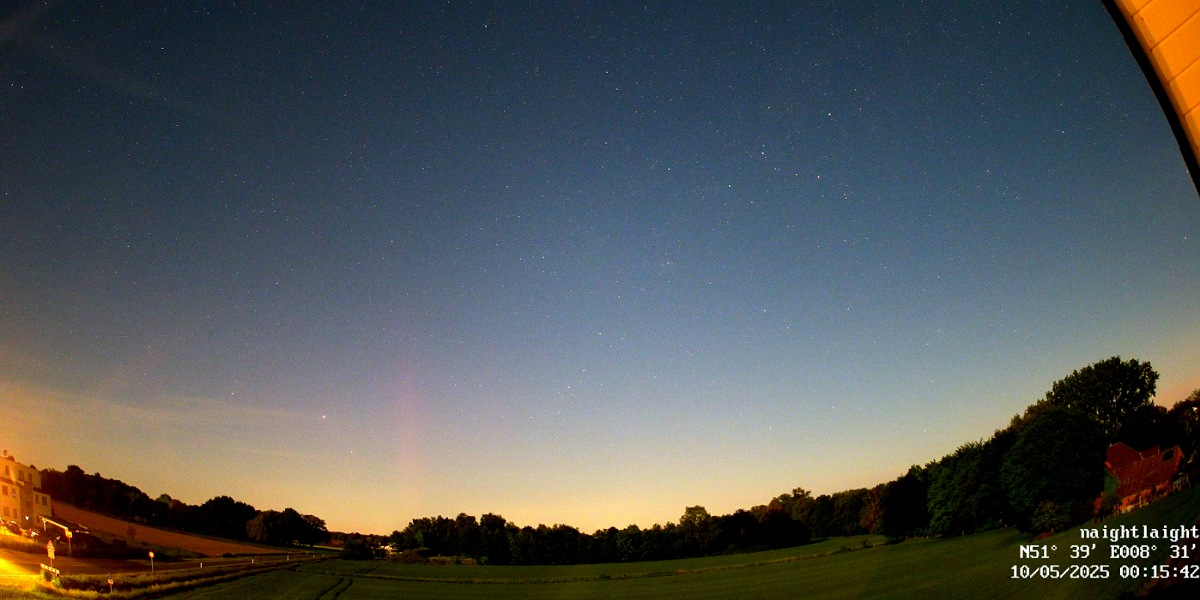 Auch aus Büdelsdorf gegen 01:25 MESZ und zwischen 02:00 und 03:00 MESZ schwaches fotografisches Polarlicht, rote Beamer. Auch am 09.05. war noch schwächeres PL kurzzeitig auszumachen.