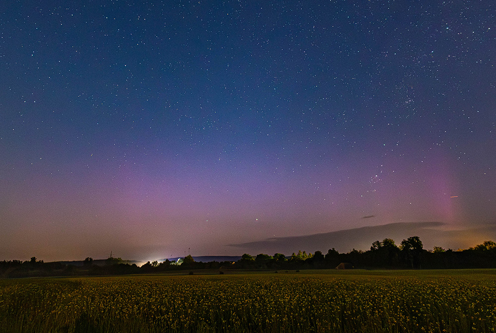 Auch in Süderlügum (54° 52´19″ N/8° 54´45″ O) gab es am 17.05.25 wieder ein fotografisches Polarlicht zu sehen.