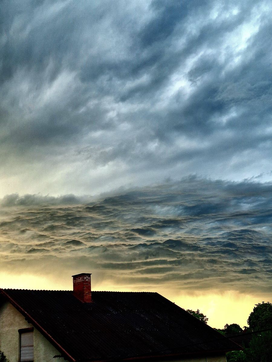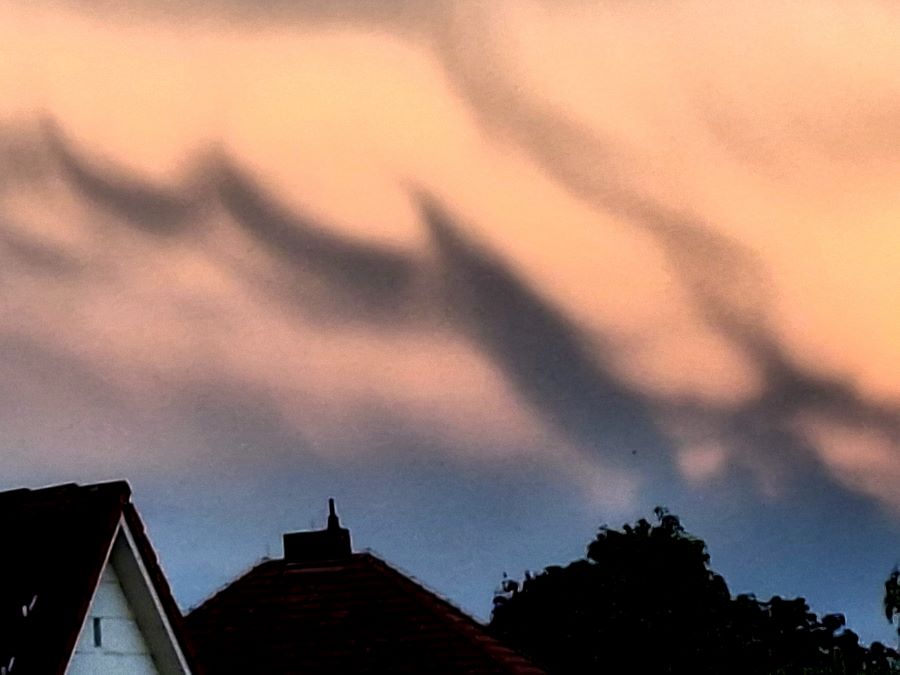 Weiß jemand, wie sich dieses Phänomen nennt? Diese wellenförmigen Wolken habe ich so horizontal auch noch nicht gesehen, geschweige denn mit Regenbogen. Gesichtet heute auf dem Weg von Dresden nach Leipzig (ungefähr Höhe Grimma), ca. 19:30 bis 19:45 Uhr.