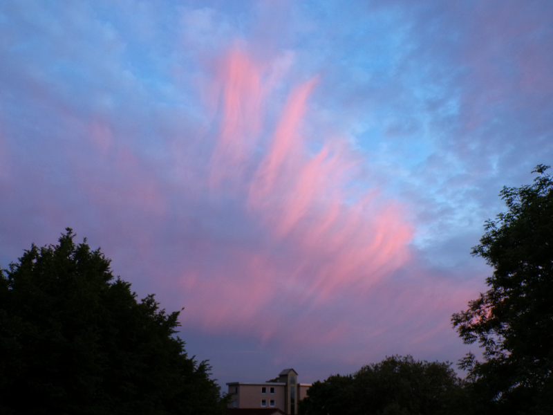 Und heute Abend (16.05.) gab es ein interessantes Abendrot mit Strahlen: