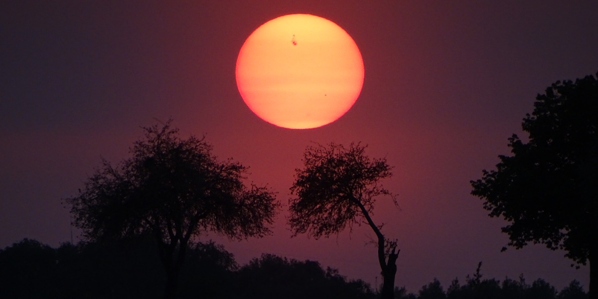 Sehr schön zu sehen ist der große Sonnenfleck Sie zerfließt förmlich am Horizont Schöne Grüße