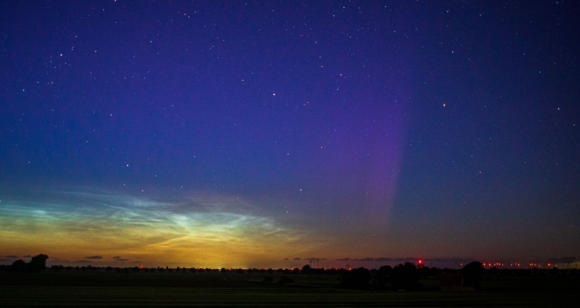Fotografisch gegen 23 Uhr 55 gemeinsam mit NLCs sichtbar... Einmal Webcam von zu Hause und einmal Geseker/Störmeder Feldflur...