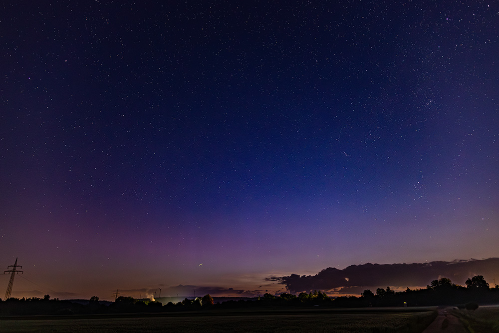 es war bei mir leider zum Zeitpunkt der Aufnahme noch Recht hell. Somit ließen sich lediglich schwache violette Strahlen aufnehmen. Später hat und der hartnäckige Bodennebel einen Strich durch die Rechnung gemacht.
