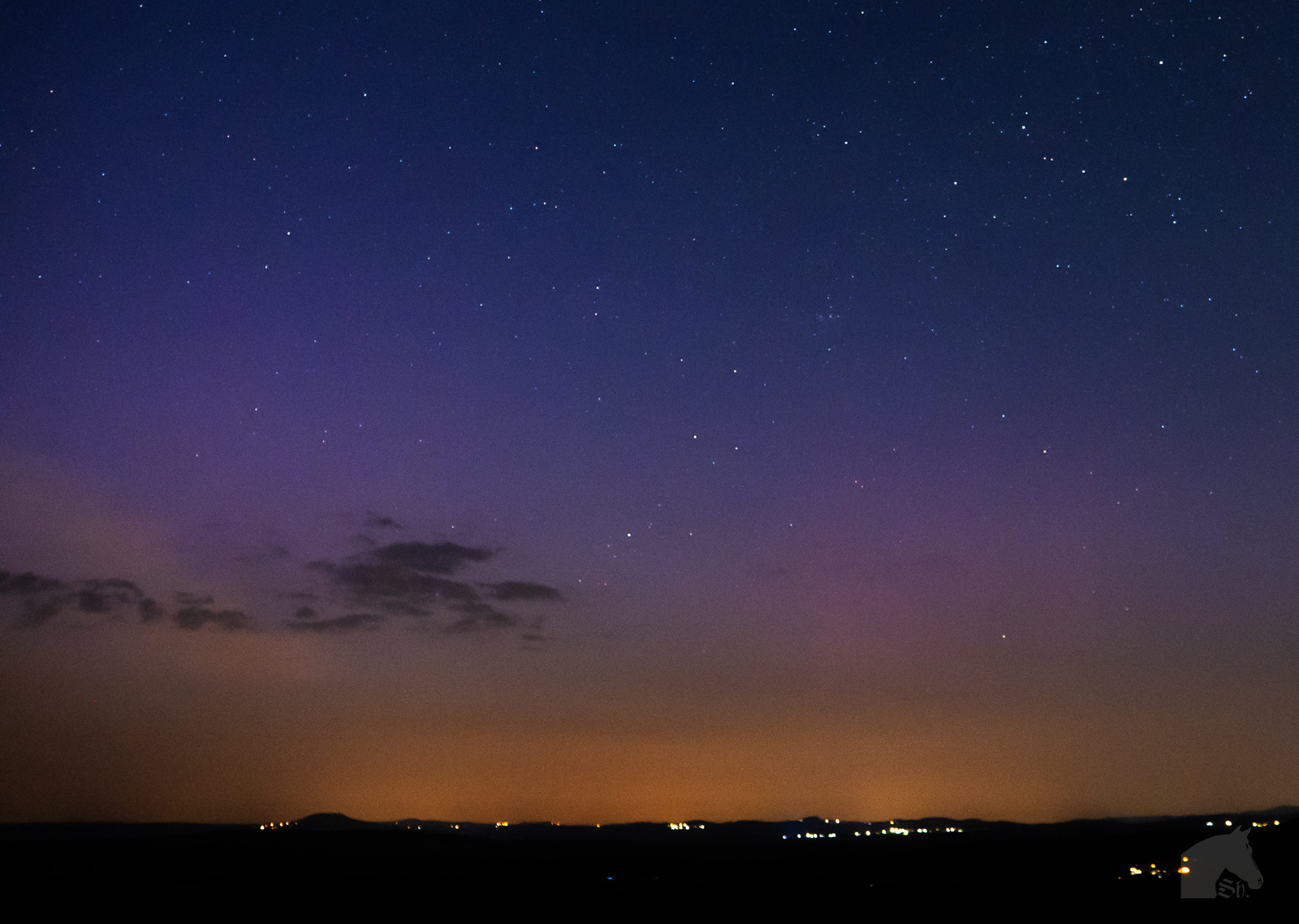 um 00.08 h MESZ gab es kurzfristig schwach photographisches Polarlicht. Danach zog es sich zu.