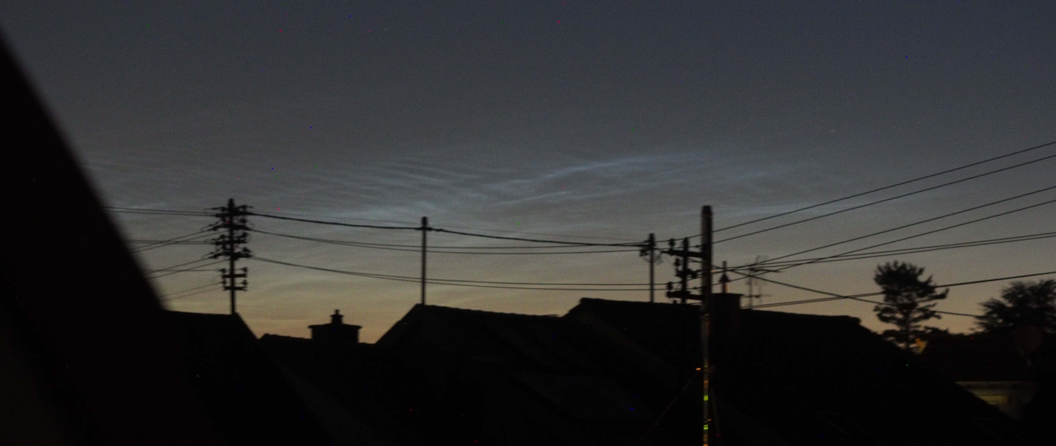 NLCs um 0:00 MESZ in Issum am Niederrhein; Höhe 10° Richtung NNO; Helligkeit 3